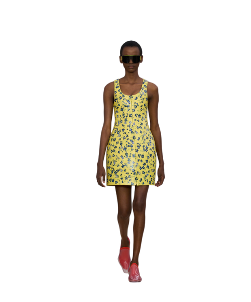 Emily’s sunshine-yellow moment is pure fashion optimism. This look is impossible to ignore, leaning into playful maximalism with a polished edge and textures. Against Parisian stone backdrops, the colour feels almost rebellious.