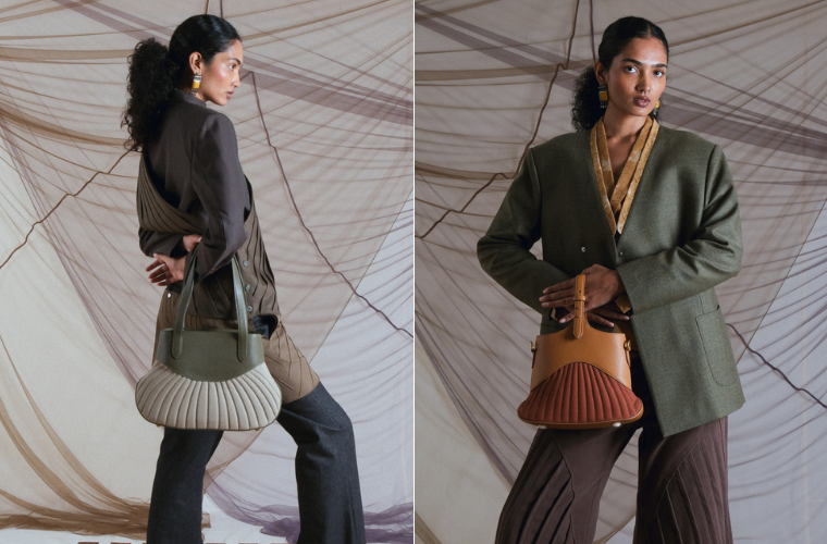 Blending South Asian heritage with a modern aesthetic, Absent Findings differentiates itself by offering non-formulaic designs. This is most clearly seen in the top handle of its signature handbag. Countering the dominance of rectangular silhouettes, it avoids the trap of logo over-branding, allowing craftsmanship, cultural representation, and proportion to speak. Singh shares, “That is basically the essence of what I’m trying to push, where design has to speak, you know, no logos, no graphic tees, nothing but good design and good craftsmanship, because that is something that I’m obsessed with.” He adds, “I don’t want to spell things out for people. I want people to have a cerebral reaction to what I’m creating.” The brand positions itself within contemporary luxury, with accessible price points that signal intent to showcase pure talent – and the reception so far has been promising. Singh fondly shares that this makes perfect sense for an emerging label to build trust within the fashion industry and win over new customers. He talks passionately about his ambitions to be recognised alongside designers like Jonathan Anderson, who has successfully pivoted Loewe into a commercial success.