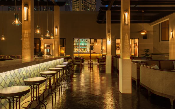 Walking into the beachfront building located at Le Royal Meridien Beach Resort, we were greeted by cool beats, a bustling bar, low lit lights and an entourage of staff wearing ear pieces – it felt like we’d just arrived at a cool exclusive party not a hotel restaurant near the beach.